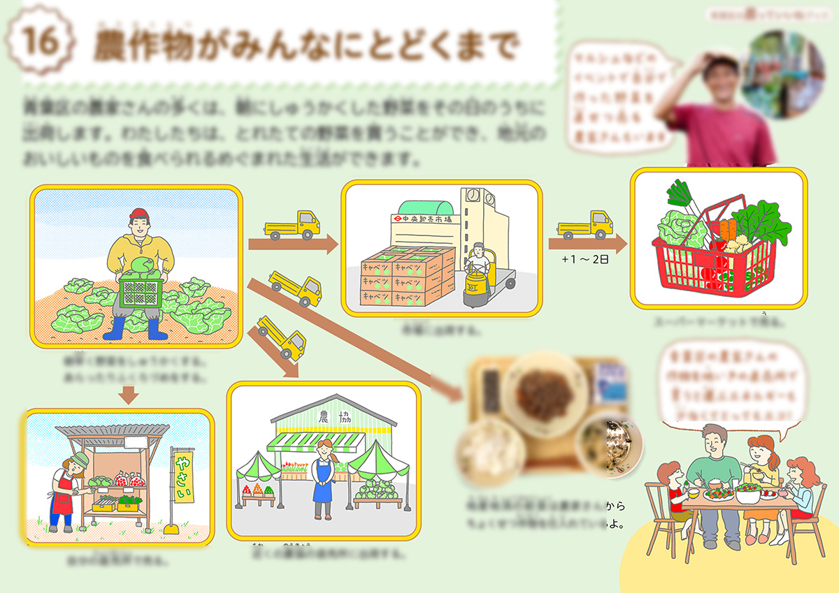 青葉区の農っていいねブック Illustration / Book Design 横浜市青葉区区政推進課が発行する小学生向けのデジタル学習コンテンツ『青葉区の農っていいねブック』のデザイン、DTP、イラスト約100点を担当しました。 企画・構成・編集・執筆:認定NPO法人森ノオト レイアウトデザイン:コトモモ社 イラスト:たけなみゆうこ Creative Fieldsイラストレーション ブックデザイン Client認定NPO法人森ノオト Link横浜市青葉区ニュースページ