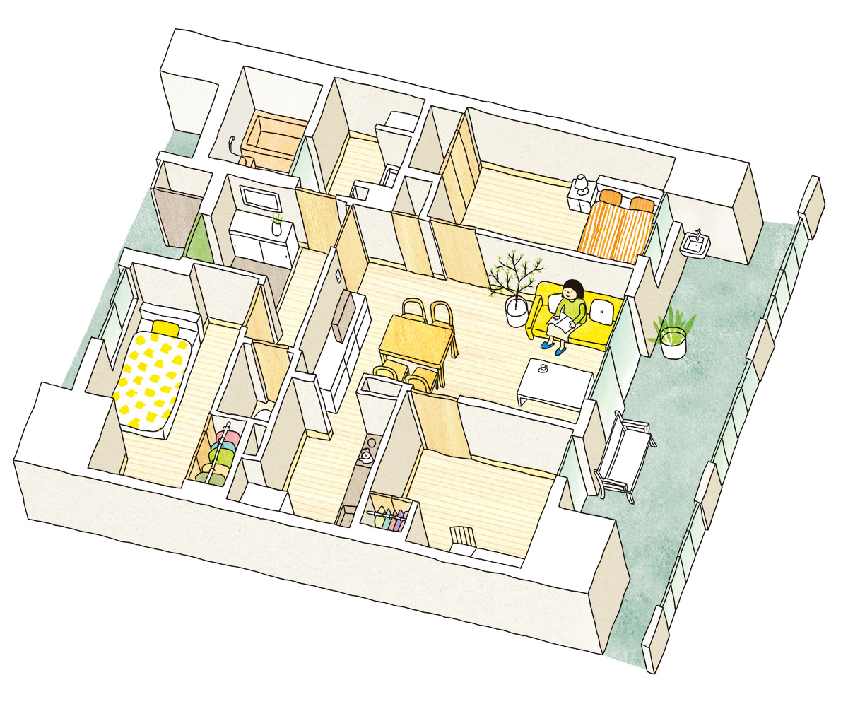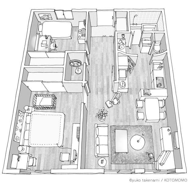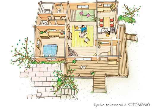 建築パース集 2 Architectural Drawings 2 間取り図を立体的に描いたイラストは、建築誌のほかにも、マンション、設計事務所や工務店のパンフレット、書籍の挿絵、解説図などにもご依頼をいただいております。 Creative Fields建築パース