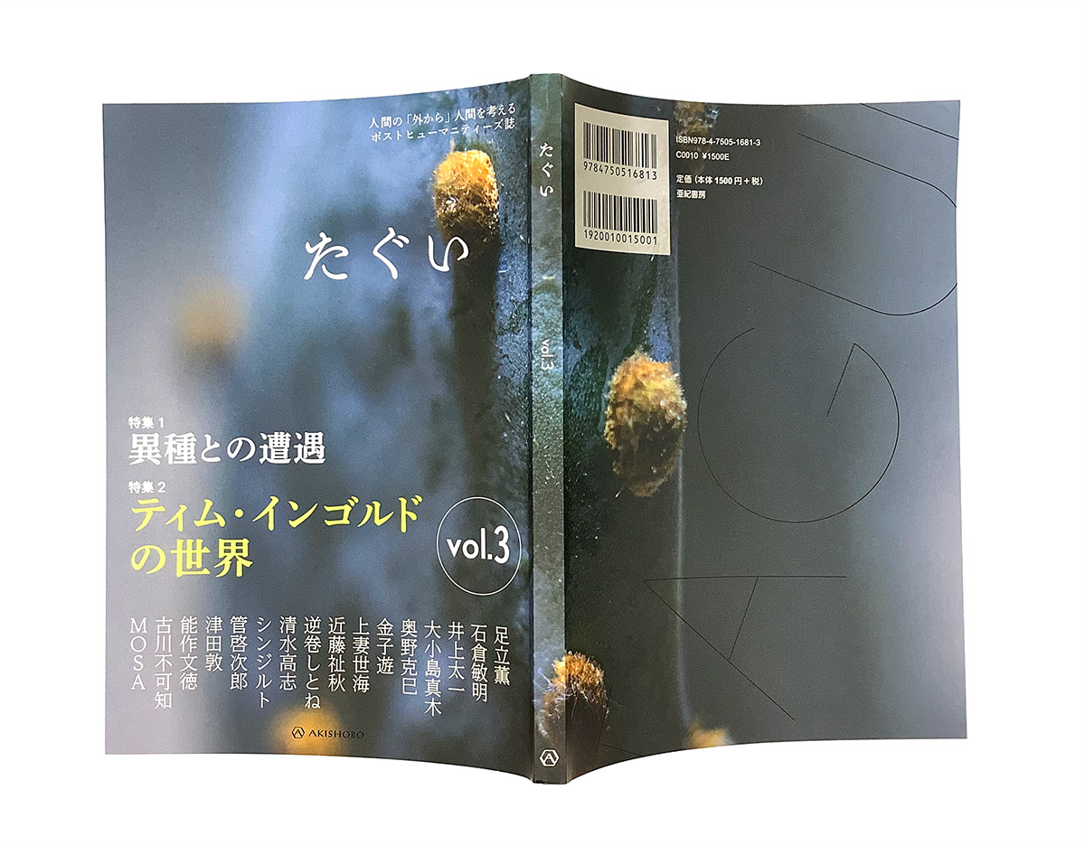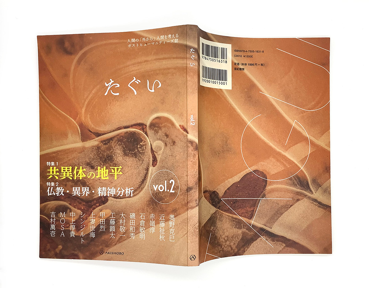 たぐい vol.1-4 Book Design 『たぐい』 話題の人類学者や批評家たちを結集した、新しい人類学の専門誌 【vol.1】執筆者:奥野 克巳、シンジルト、近藤祉秋、東千茅、石倉敏明、その他 【vol.2】執筆者:奥野 克巳、吉村 萬壱、上妻 世海、近藤 祉秋、石倉 敏明、その他 【vol.3】執筆者:奥野 克巳、近藤 祉秋、足立 薫、石倉 敏明、井上 太一、その他 【vol.4】執筆者:奥野 克巳、近藤 祉秋、石倉 敏明、唐澤 太輔、シンジルト、塚原 東吾、中江 太一、その他 装丁・レイアウト・DTP:コトモモ社 Creative Fields装丁、レイアウト、DTP Client亜紀書房 Linkvol.1 - amazon Linkvol.2 - amazon Linkvol.3 - amazon Linkvol.4 - amazon