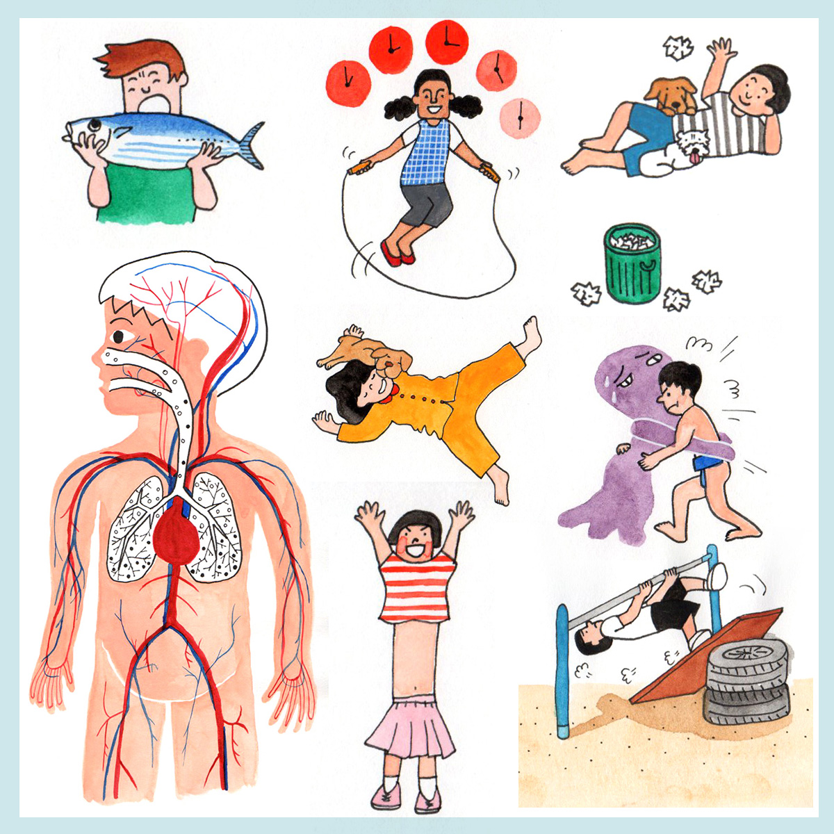 たのしいうんどう Illustration 『たのしいうんどう (こどものための実用シリーズ)』のイラストを担当しました。カバーと章扉のイラストは切り絵です。カットを数百点描きました。 監修:平尾 剛 装丁:矢萩多聞 画:たけなみゆうこ Creative Fieldsイラストレーション Drawing Material水彩、ペン、アクリル、貼り絵 Client朝日新聞出版 Linkamazon
