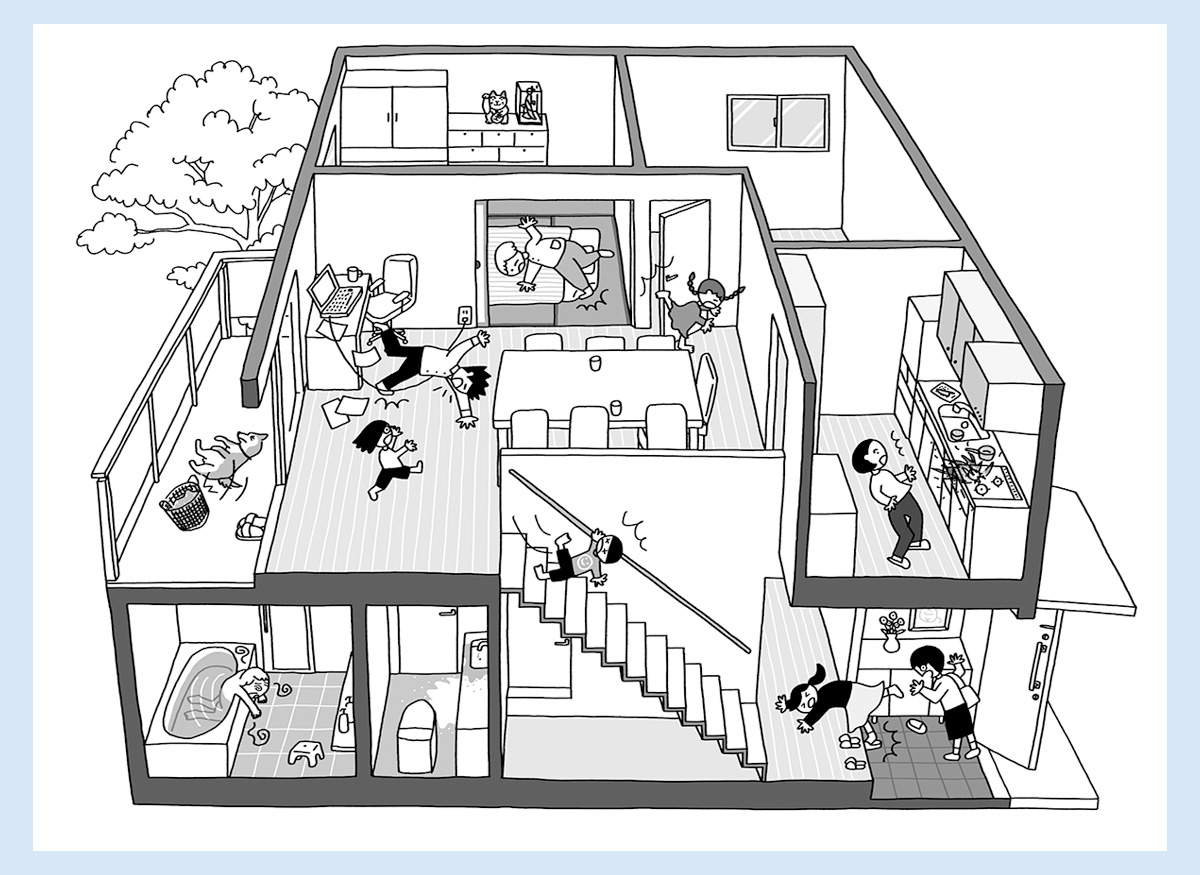 「女性セブン」解説図 Illustration / Architectural Drawings 「家の中でのつまずきに注意!」特集の解説図。 Creative Fieldsイラストレーション建築パース Client女性セブン